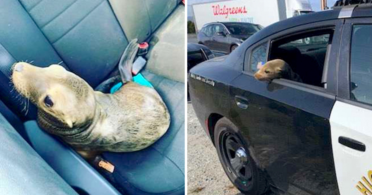 高速公路上逮到誤闖小海獅! 警察一到場牠「乖巧跳後座」:叔叔我錯了