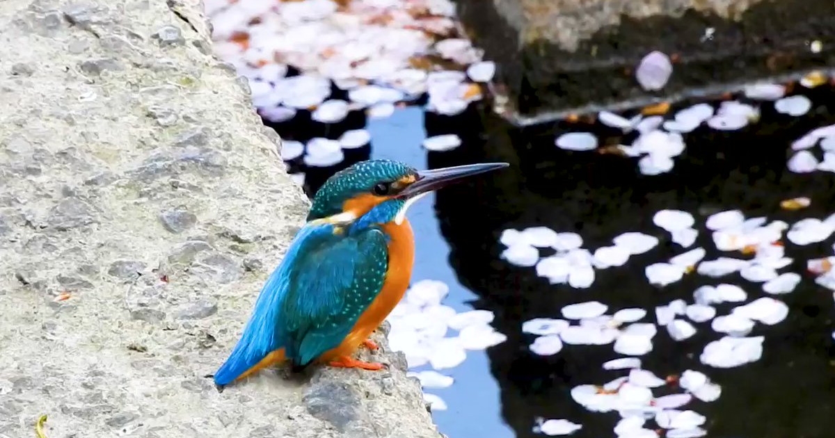 河面落櫻太美「翠鳥都停下來看」 閒靜打動人心:太風雅了